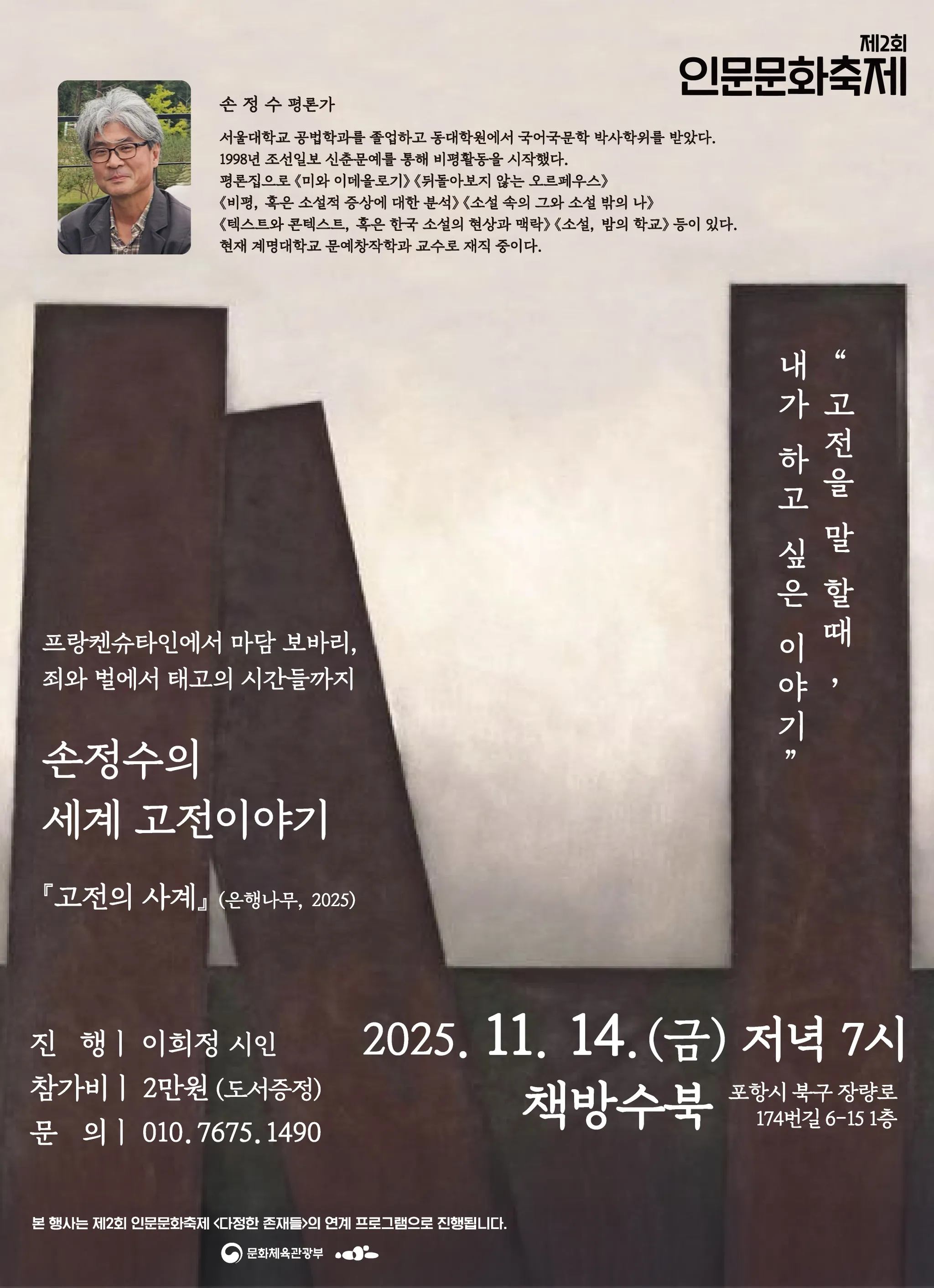 <손정수의 세계고전이야기>에서는 평론가 손정수가 펴낸 신간 『고전의 사계』를 통해 접근하기 어려웠던 세계문학을 쉽고 재미있게 지역의 독자들과 함께 나눕니다.