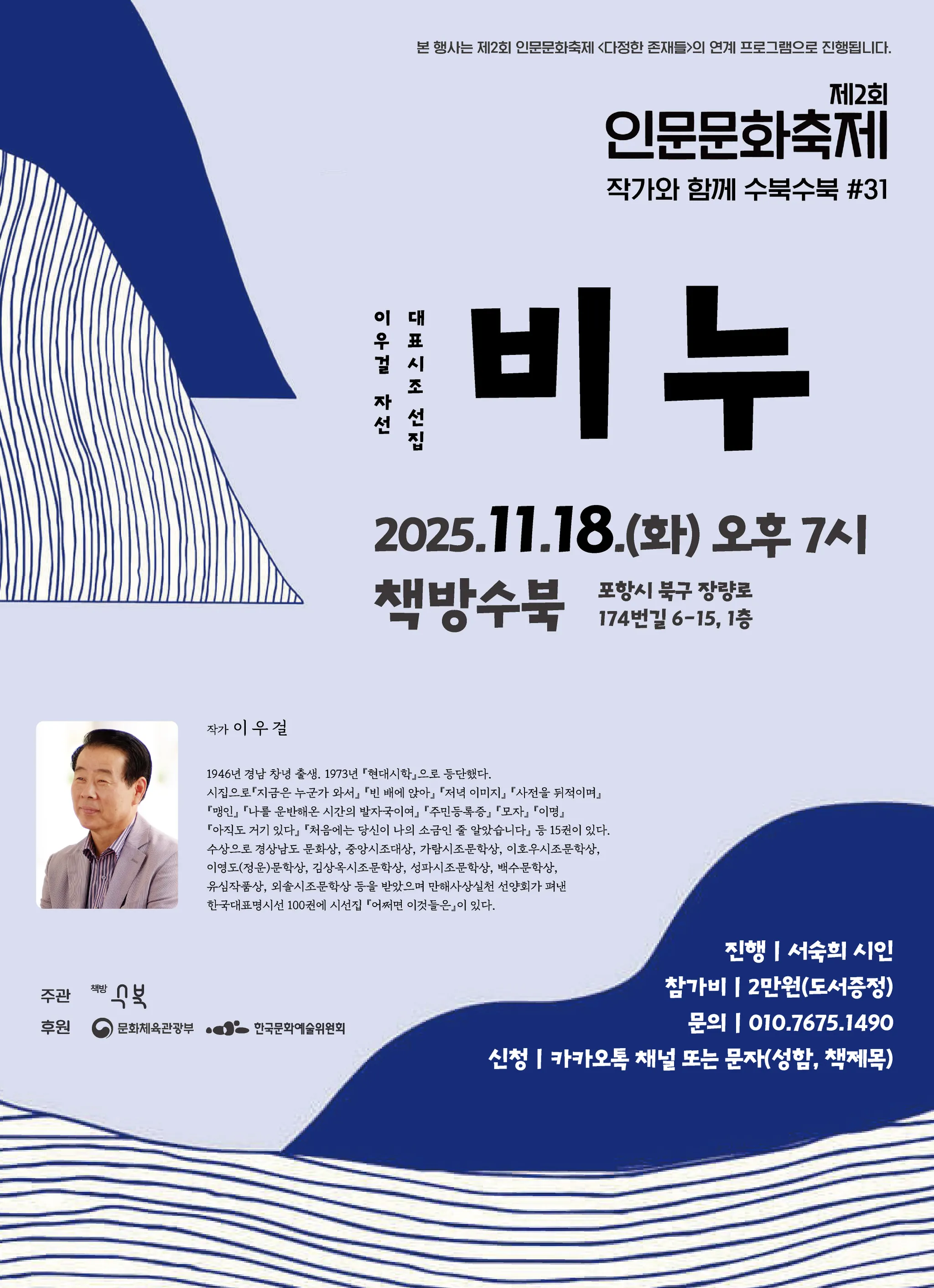<작가와 함께 수북수북>에서는 시조문학의 거목 이우걸 시인, 포항지역의 대표 시조시인 서숙희와 함께