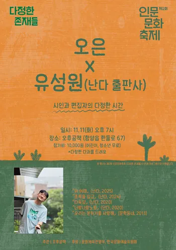 출판사 <난다>의 편집자 유성원님과 오은 시인을 초대하여 작가와 편집자가 함께 고민하여 만든 책들을 보다 입체적인 시각으로 살펴보고자 합니다.
