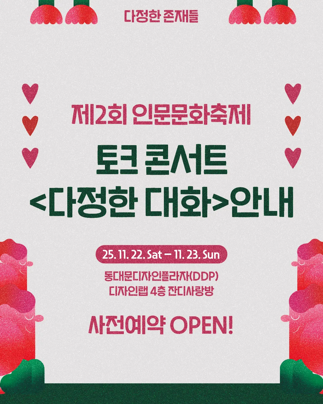 11월 22일, 23일 이틀간 동대문디자인플라자(DDP)에서 진행되는 인문 토크콘서트 <다정한 대화>