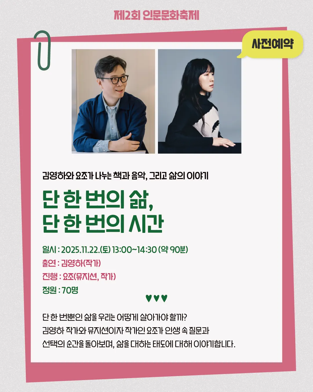 [공지] 2025년 제2회 인문문화축제 - 토크콘서트 프로그램 소개